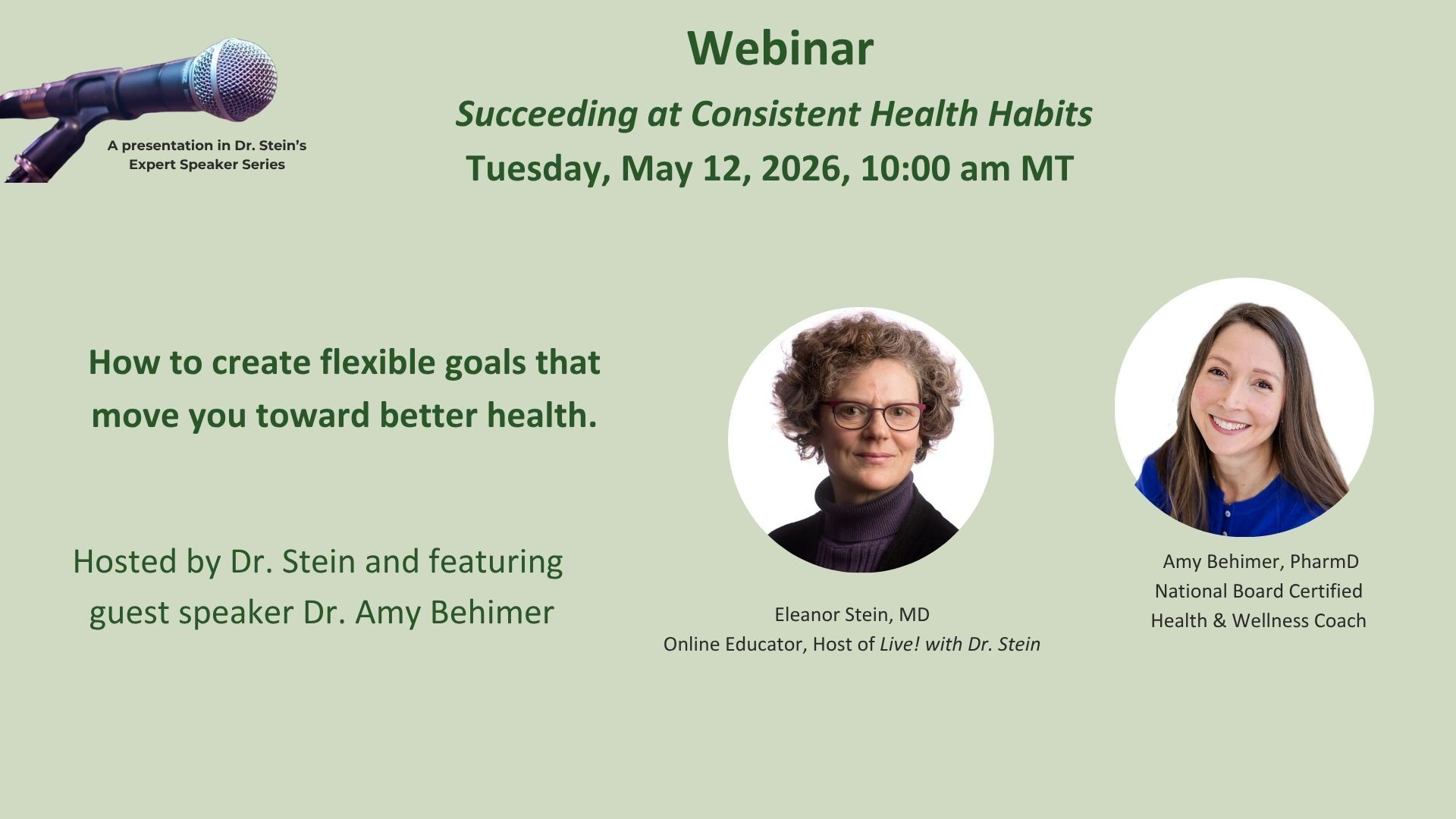 This presentation is part of Dr. Stein's Expert Speakers Series. These will be held approximately monthly, and each session will feature a different guest expert on topics of interest to people with complex chronic disease, chronic disease in general, and people interested in living healthier, longer.